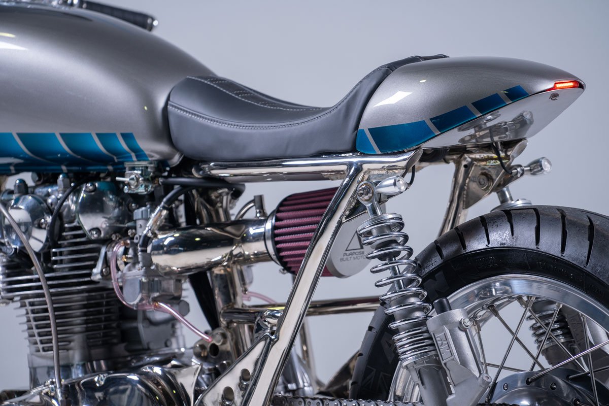 With a few select candy teal details including the Purpose Built Moto Signature ghosted on the tank the mix of polished metal and greys adds more class on top of the build. The paint finish holds a lot of depth and with the simple design doesn’t distract too much from the numerous other details that might catch your eye.