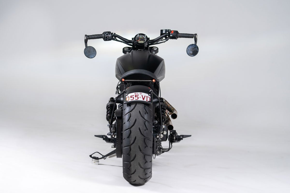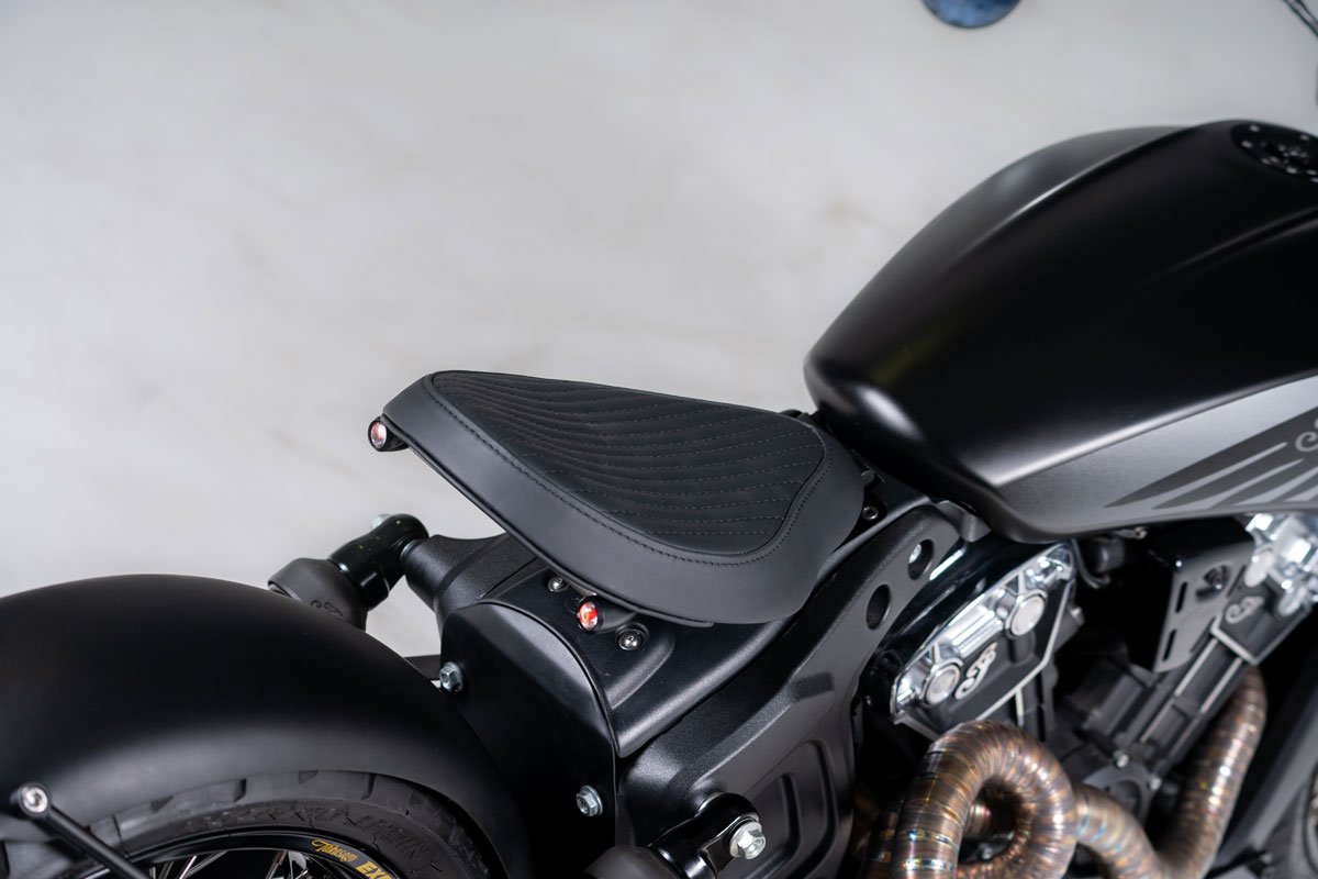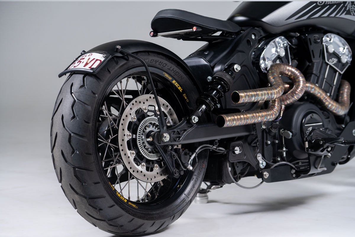 The Custom Indian bobber was finished in a flawless matte black, retaining the factory black/silver tank details. It sits tough on the road, demands your attention and even if you refuse to look, you’re going to hear it anyway. The upgrades on the bobber have it handling like a whole different machine.