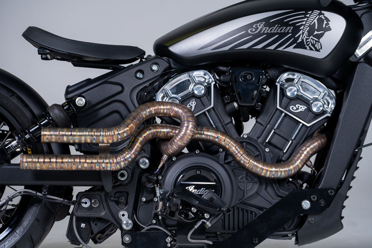 The brief was reasonably simple, and left us a lot of room to get creative. The Indian Bobber was to get a custom set of wide wheels, keep it all blacked out, and a completely off the wall exhaust. The idea was to streamline the bobber, beef it up and I wanted to improve the performance on this thing a bit.