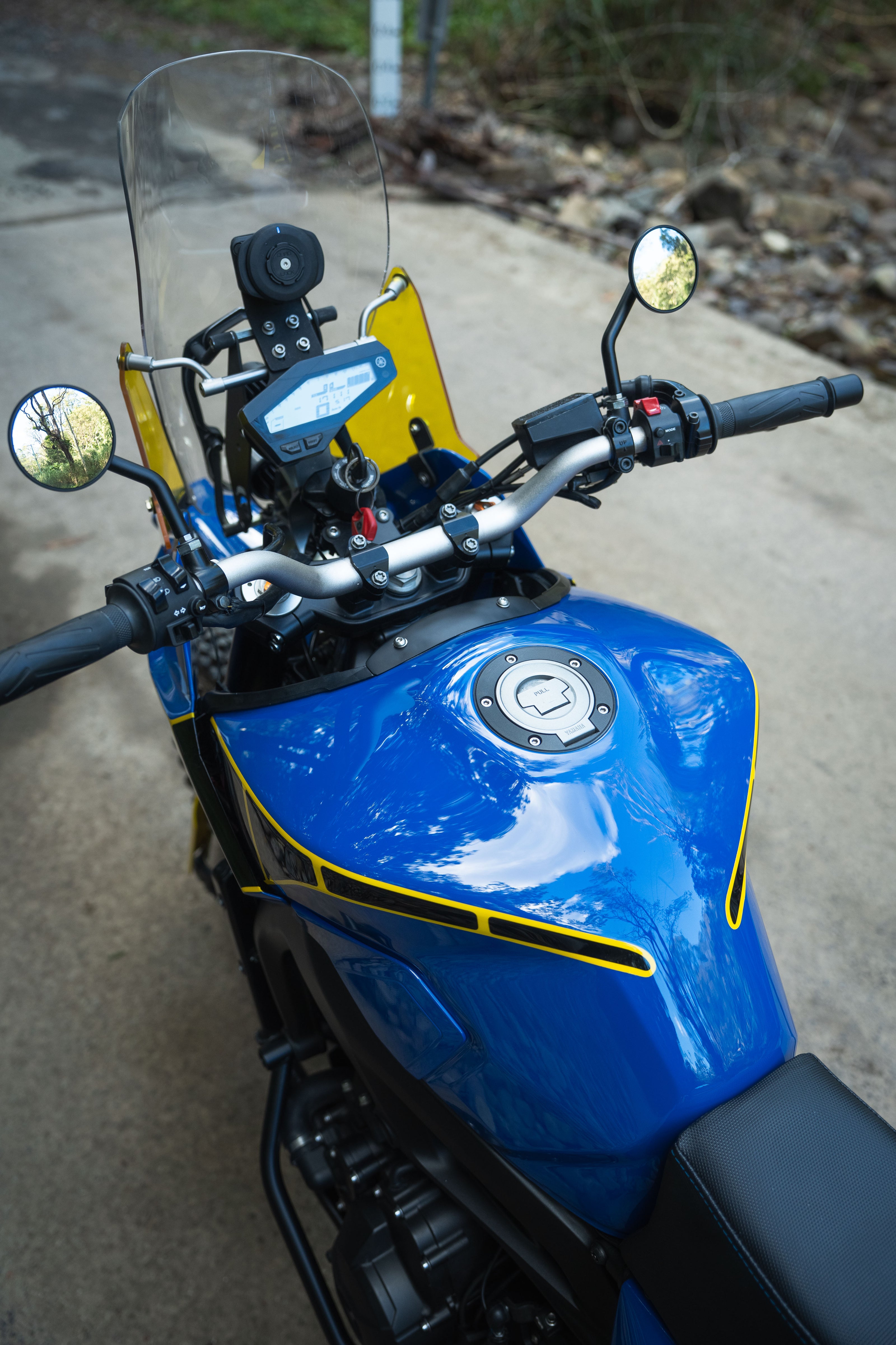 The MT09 as it sits is lighter than the Tenere 700 at 188kg, and makes more power. If we were to beef up the suspension, lift the bike, fabricate a rally tower and convert the wheels to off road sizes wrapped in a knobby tyre, that would probably make a lot of sense…. Or at least be a lot of fun.