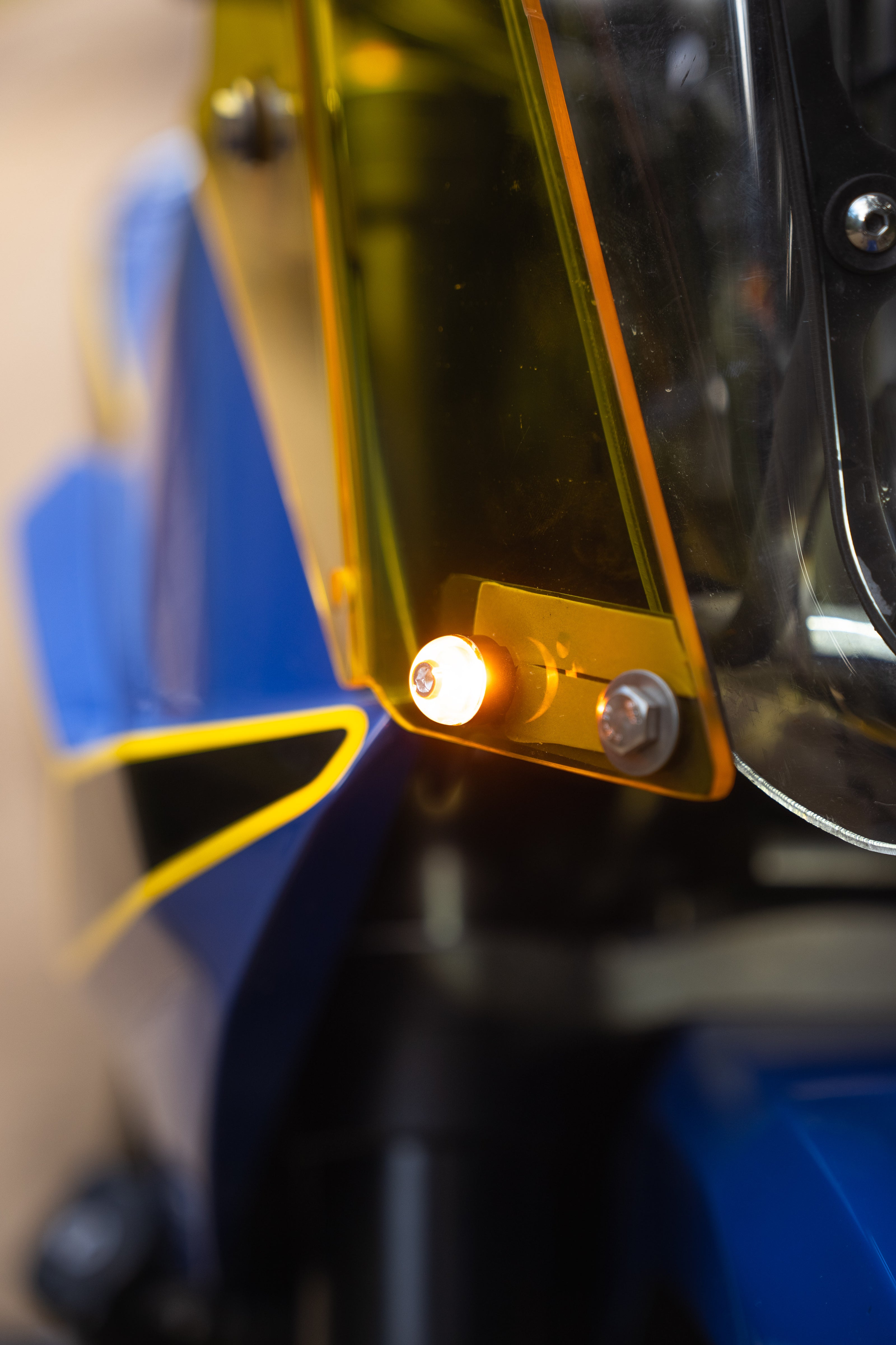 Cody got busy making the sheet metal that would link the tank to the rally tower. We designed a shape that would retain the sharp lines present on the MT09 tank, and give some muscular shoulders to the front end of the bike. These panels finish into a pair of secondary windscreen panels made from High def yellow Perspex. This area is my favourite part of the bike, the style and finish looks factory, but is 100% hand made. The yellow screens give a great pop of colour on the front end and serve to let the rider have a better view over the front from the saddle.