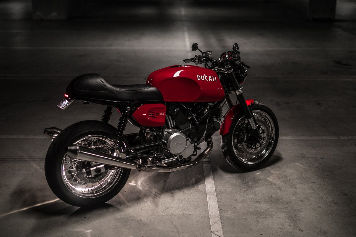 After a bit of installation time, and fitting a specially made Moto Products 525 sprocket, the bike was dropped off the lift and now complete. From the ground up the aesthetics of the Ducati GT1000 had been refined, polished and tightened up. Revealing an extremely well balanced custom motorcycle that strays just far enough from the factory styling to let you know this bike was hand crafted to be 1 of 1. As far as I go with other projects, it’s nice to be remonded of just how far some subtlety and restraint can go on a motorcycle. Building a bike like this is a whole other game in a lot of ways, and something that I truly enjoy seeing the end product of.