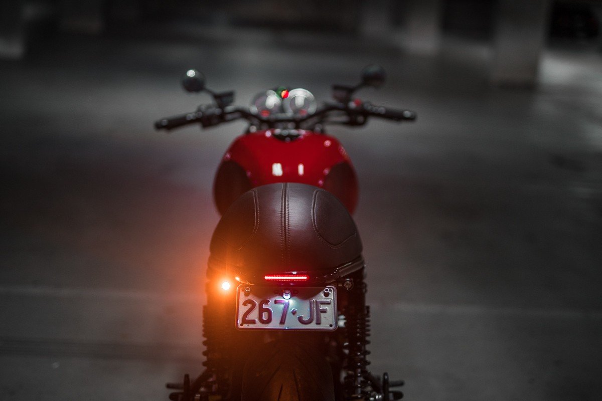 The bars and levers have also been replaced, lowering the riders hands and delivering a sportier riding position that begs to be tested through twisty corners. The new seat shaped and upholstered in house also lowers the rider position further into the bike.