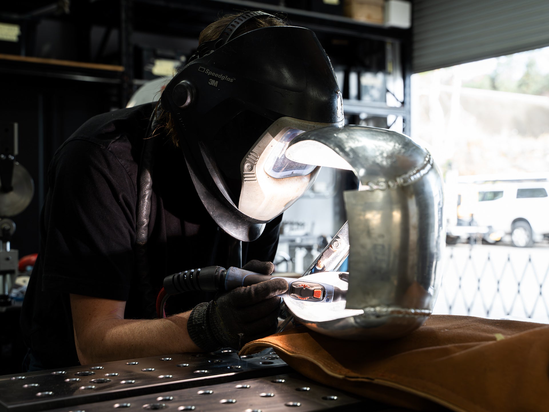 With the backbone modified, it was time to tackle one of the biggest pieces of visual real estate on any bike: the fuel tank. Cody, our in-house fabricator, took the lead on shaping it from raw aluminium. He’s been refining his craft for a while, but this was his first major tank project at Purpose Built Moto.