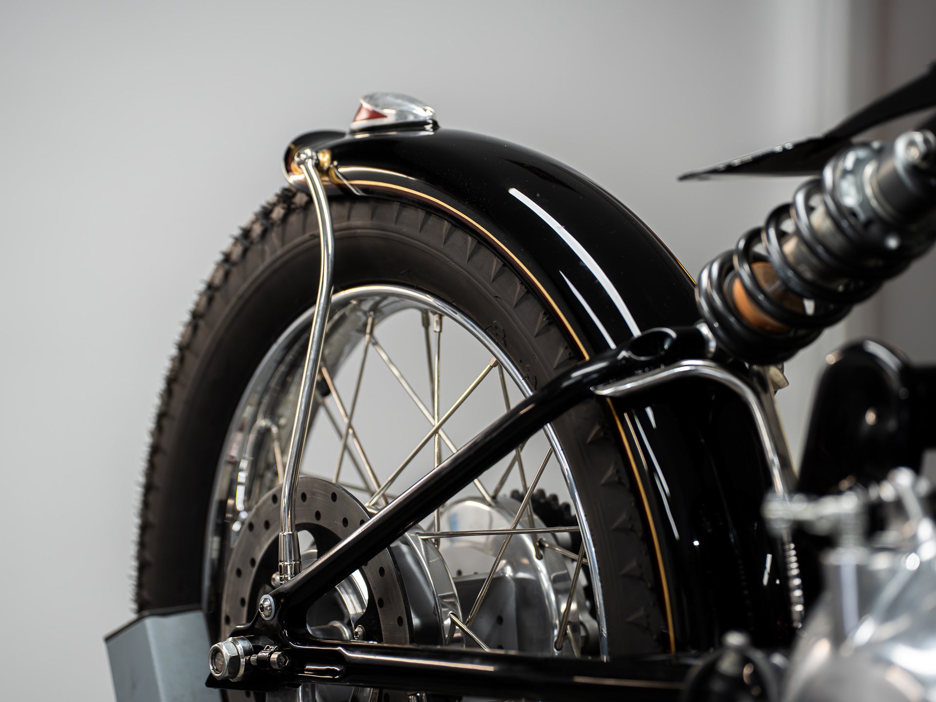 - Lighting: A vintage-style headlight at the front, plus a Deco fender-mounted tail light, needed to be wired in. Running wires internally through the girder fork was tricky, but worth the effort to keep the lines clean.
