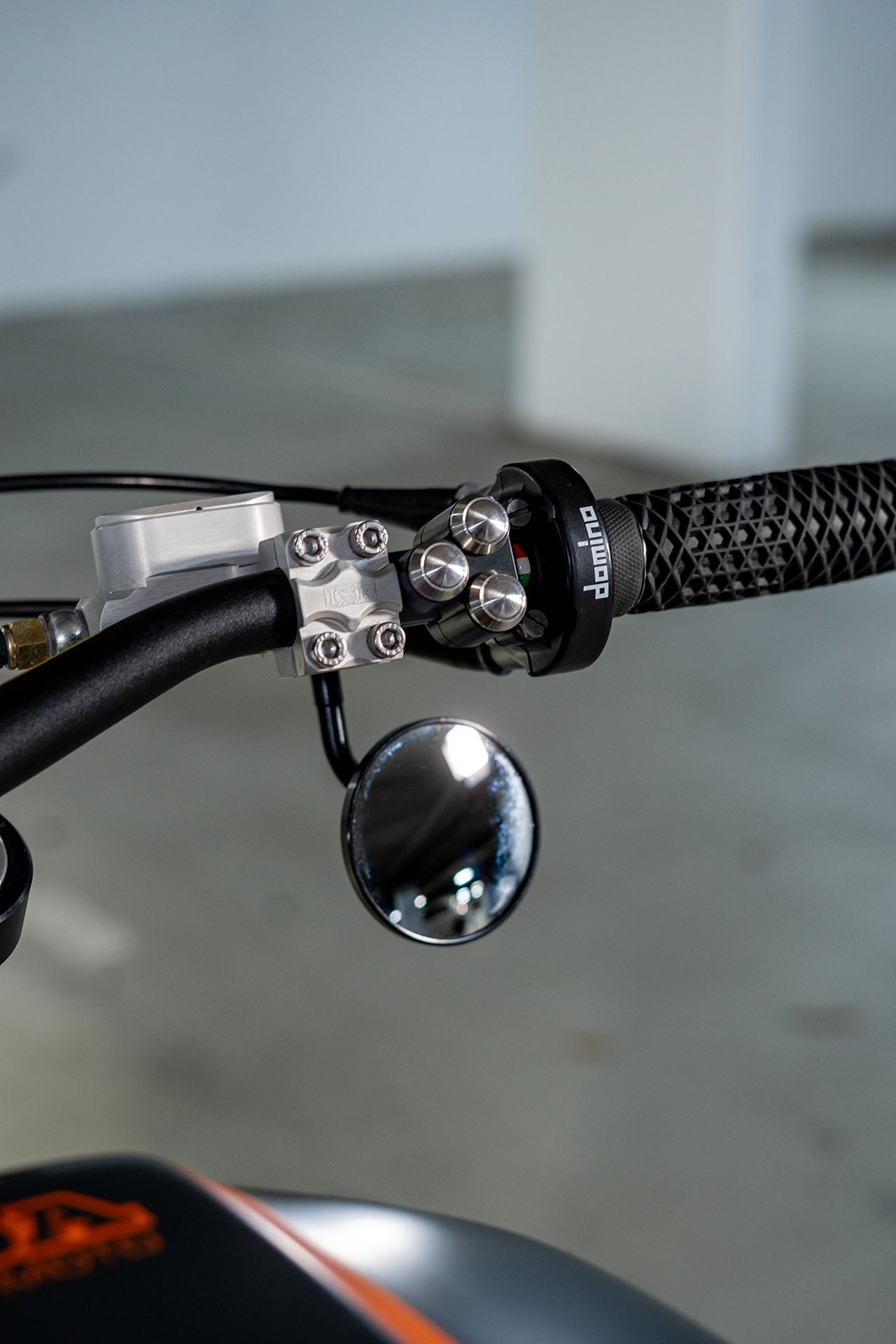If you’re going for a minimal handlebar setup, try to keep wiring as tidy as possible. Purpose Built Moto’s Push Buttons are a solid choice if you want clean, hidden wiring with easy functionality.