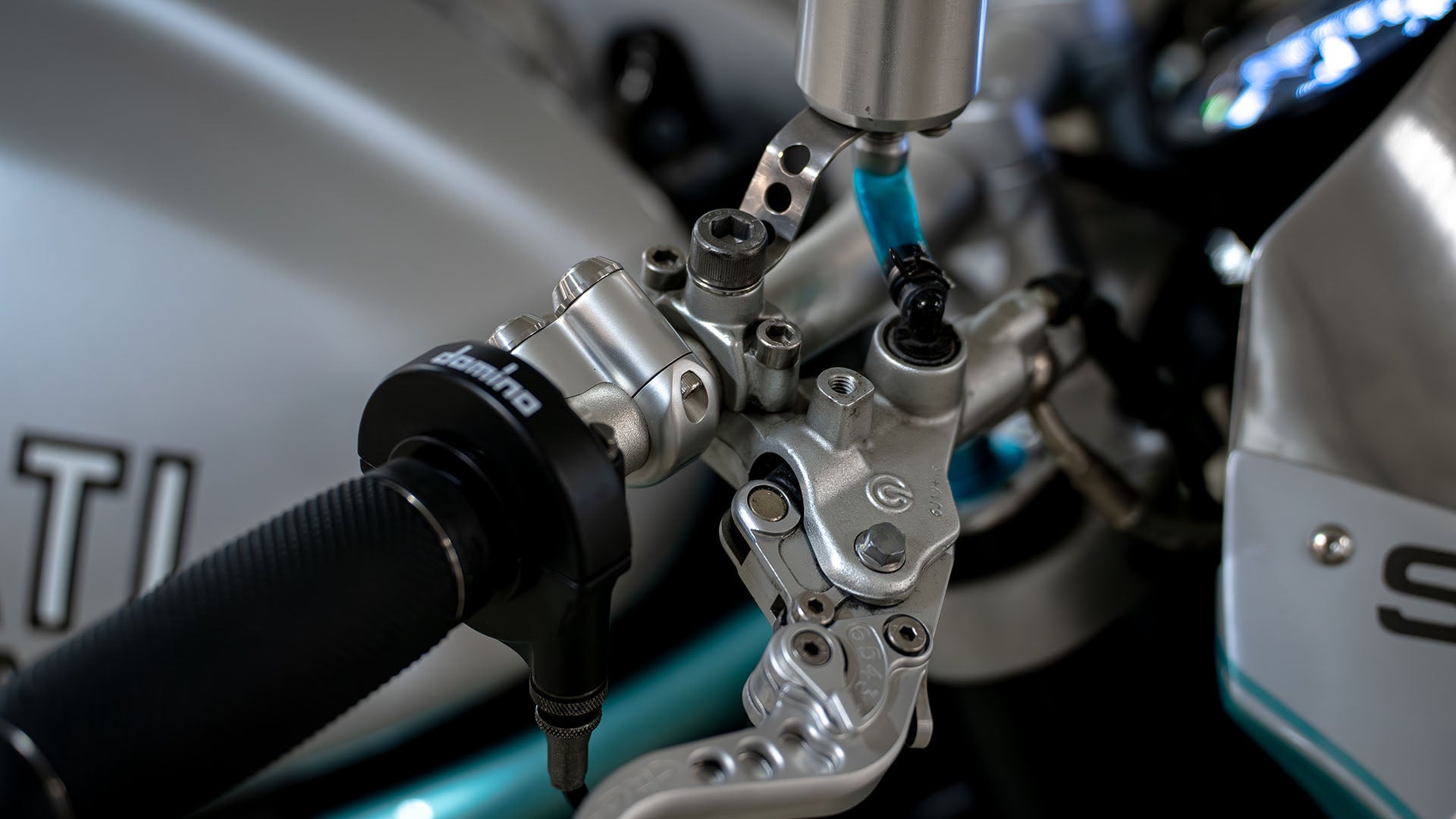 Brake levers and master cylinders can be factory standard, or you might opt for a performance upgrade. HEL Performance brake setups are a great way to sharpen up your stopping power while adding a high-end touch to your build.
