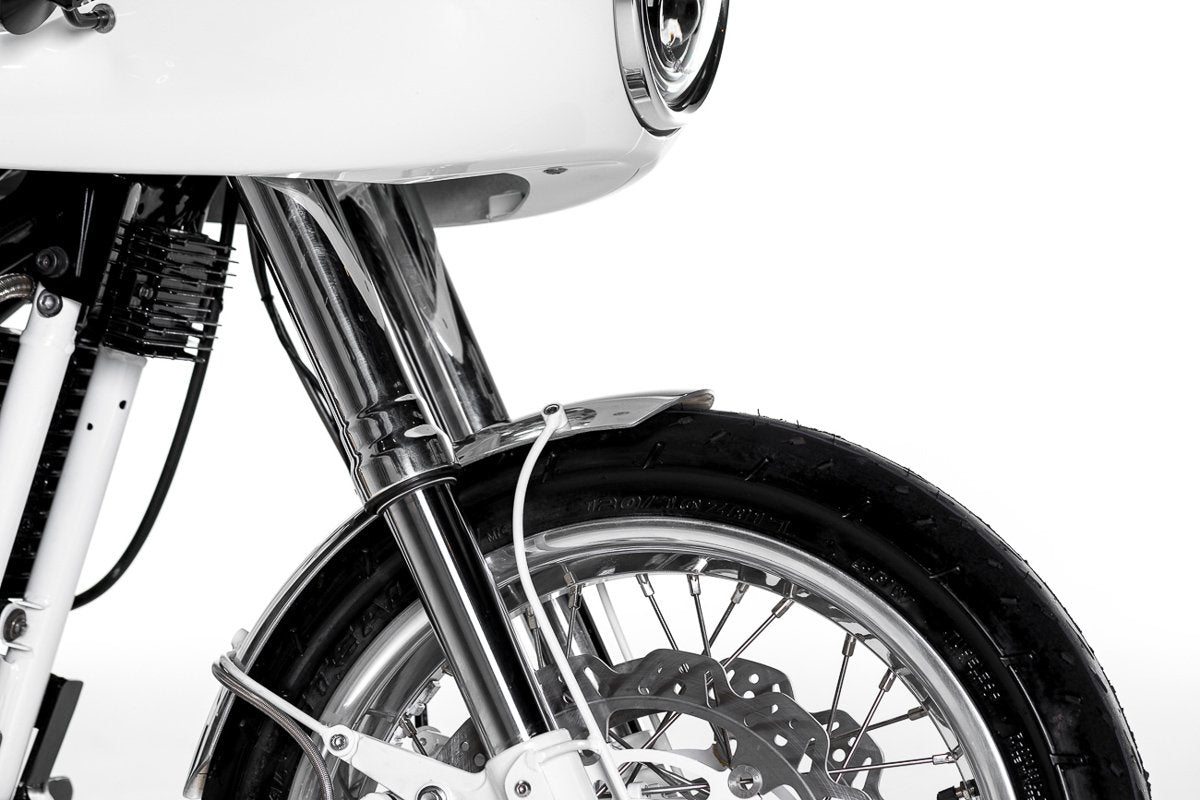 If you want to get into that style jump over to the fork brace article. Shown here on our Honda CB900 Chopper project, although not running a front fender, it does have the provisional mounts if the rider ever wanted to fit one.