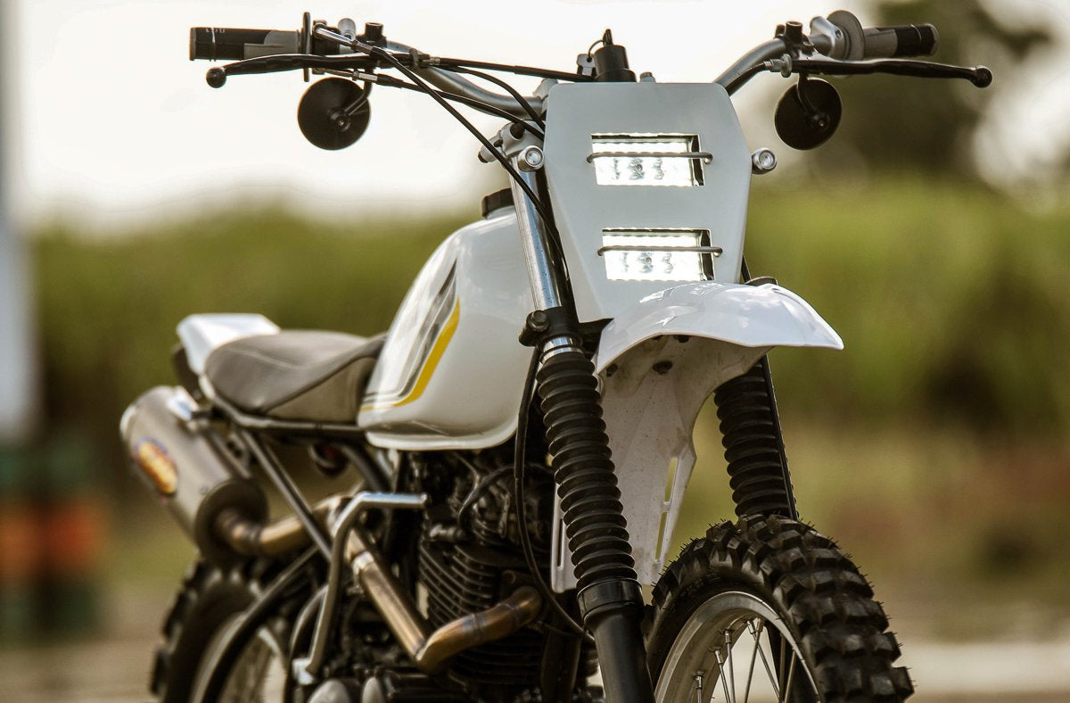 I’ve used this motorcycle fender method on a few scramblers I’ve built but never with an aluminium fender. Only with plastic MX fenders. Like the one shown here on the XT250 MX Scrambler.