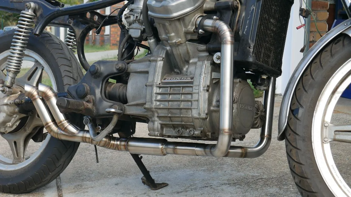 So you’ve purchased the bike and cut it to pieces and thrown out the old muffler with a pea shooter hole in it that makes it sound like the Jetson’s mobile. What now? If you want to get the best finish possible you’ll choose to replace the headers with a custom system, if you’re going as far as an oversize piston kit + upgraded carbs it may be well worth it. The rule of thumb here is that output has to match input and vise-versa. If you have better air/fuel flow, higher compression and/or bigger capacity, you need an easier outflow ie. A custom built system or an off the shelf upgrade if it’s available.