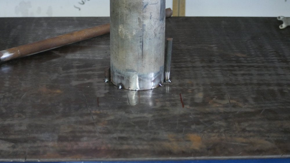Using a pipe with a diameter of 130mm (use whatever your fork width is) I’ll fix that to my welding table to use as a bending die.