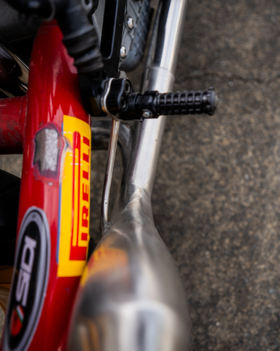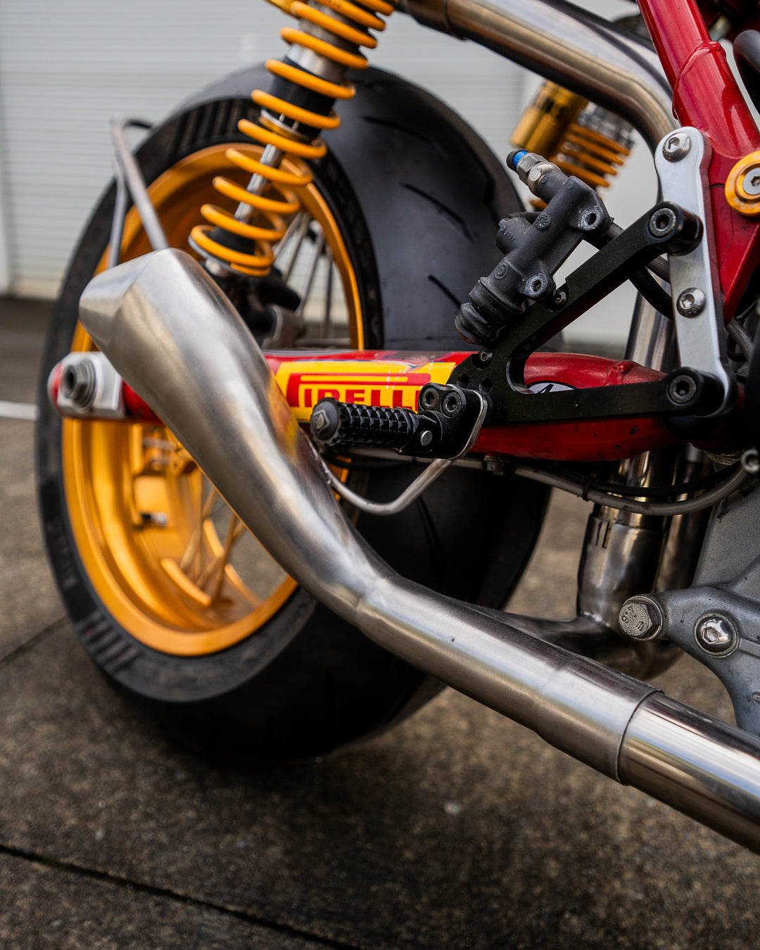 I started by fabricating the headers, opting for a 2-into-1-into-2 setup made from 44.5mm stainless steel tubing. I prefer a 2 into 1 sound, but love a twin muffler look so this gives me the best of both worlds. Starting by laying out the route of the header, tack welding together before removing from the bike to be purge welded. The 2-into-1 collector was particularly challenging due to the tight bends and limited space under the swing arm.