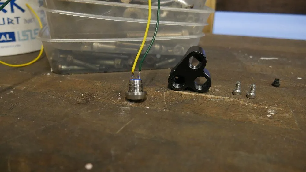 7. Fit pushbutton to switchblock, then use heat shrink sleeve on all terminals to protect from ground shorts.