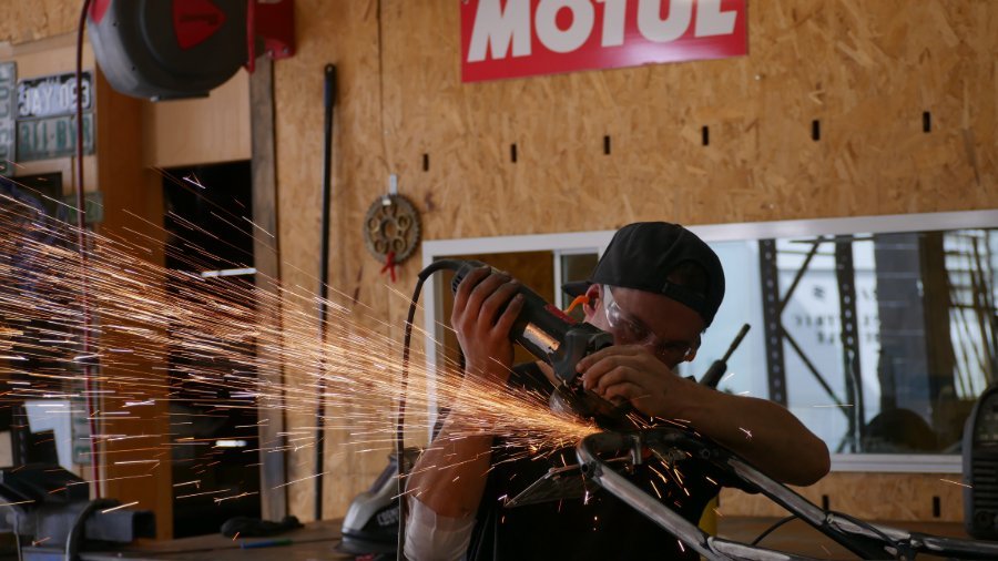 Artists work on a blank canvas, so fuck it, so will you. Remove the seat, any fenders and old lighting. Now strip the paint off the section you’ll be working and welding on. A critical part of good welding is the preparation. Get the steel nice and clean. Free from paint and rust, this gives you a good base to start from.