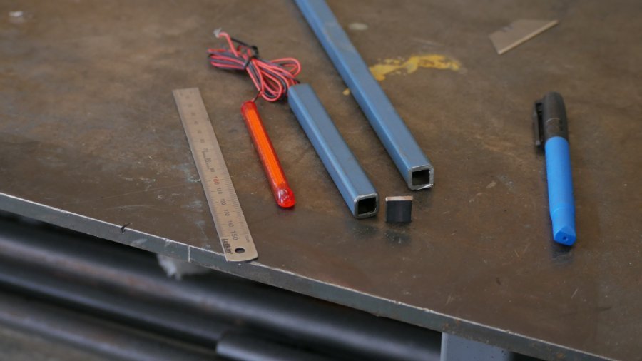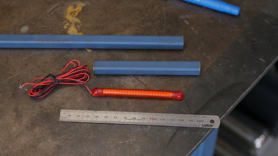 Your LED strip light may be 150mm long, but the usable LED section is usually about 130mm. To avoid dead space, I will only make the cut out hole 130mm. Mark a new centre line on your frame. Measure out 65mm on each side and mark a 130mm x 8mm section on the frame. Again, here I will drill 2 x 8mm holes on each end, this time leaving a rounded end on the cut out. Cut between the 2 holes with a thin cut off wheel. Finish your cut edges smooth with a hand file or die grinder. You can also now finish the weld seams properly and smooth the outside area of the tube.