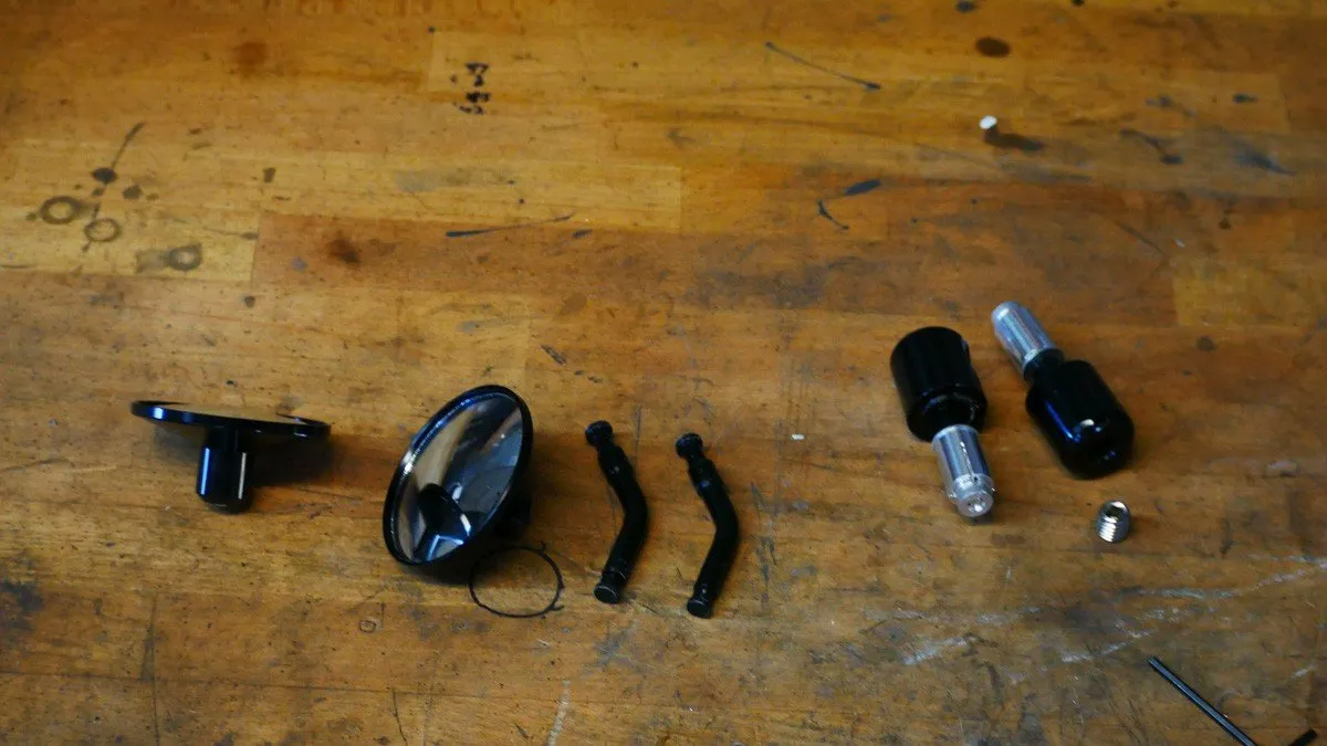 Firstly check your mirror pivot bolts, they should be M6 and have at least 10mm of thread showing to fix your mirrors to. Disassemble your bar end mirrors, you will only need the mirror section and the connecting arm. The rest can be thrown in the scrap bin for recycling. Seperate the mirror section from the arm and set the mirror aside.