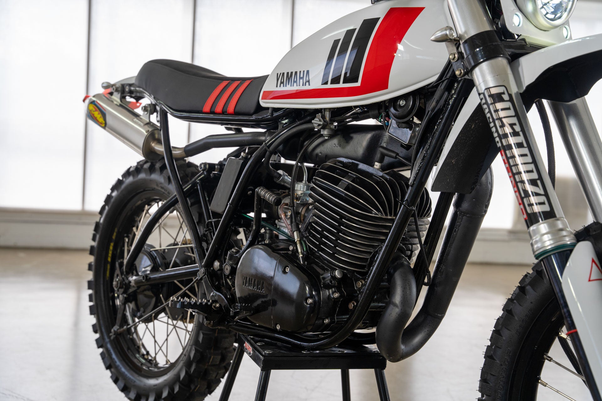 Wenn Sie ein Fahrrad suchen, mit dem Sie eine gemütliche Fahrt durch die Stadt unternehmen können, ist dies nicht das Richtige für Sie. Wenn Sie jedoch ein Fahrrad wollen, das sich nur dann glücklich macht, wenn Sie ihm den Hals umdrehen, kann es sich auf der Straße fortbewegen, ist aber auf einem Feuerweg zu Hause, und egal, wohin Sie zeigen, es liefert jede Menge Spaß. Dann könnte unsere Neuinterpretation der DT400 Scrambler von 1978 genau das Richtige für Sie sein.
