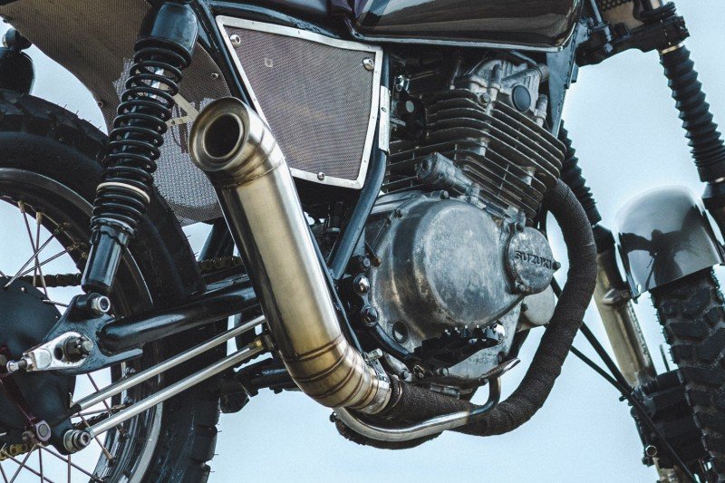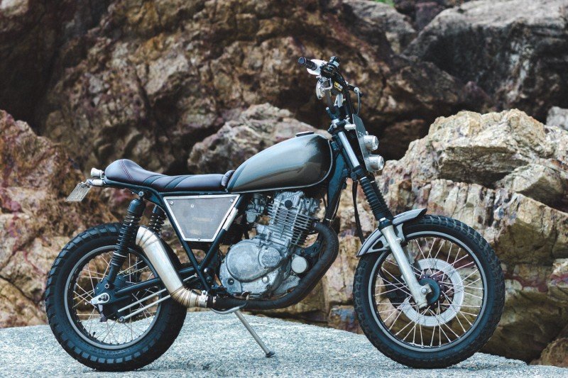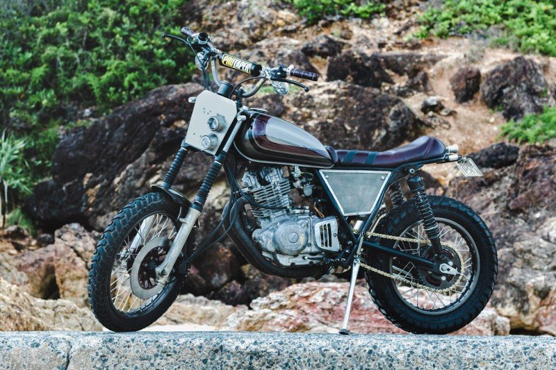 Ein Scrambler ist kein Straßenrad mit Stollenreifen. Es handelt sich um eine funktionelle Spaßmaschine, die sowohl für den Einsatz auf der Straße als auch im Gelände geeignet ist. Dieser GN250 ist ein Experiment in diesem Sinne. Diese Offroad-Schönheit entstand aus dem Wunsch des Besitzers, dass sein erstes Fahrrad etwas anders als die Norm sein sollte. Während des Baus lernte er viel darüber, wie sein maßgeschneidertes Motorrad funktionierte und wie man es instand hielt. Das Farbschema zeichnet dieses Exemplar wirklich aus: kirschrote und schwarze Details auf einer Basis in Gun-Metal-Grau.