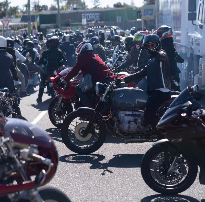 Da der erste Termin für die Gentlemans-Fahrt aufgrund des schlechten Wetters verschoben wurde, erwartet uns als GC-Fahrer ein epischer Tag, an dem wir das Beste aus der Gold Coast-Motorrad-Community präsentieren. Wie Sie sich vorstellen können, brannten die einheimischen Fahrer darauf, sich anzuziehen und einen unterhaltsamen Tag mit Fahrrädern, Essen, Live-Musik und einer Fahrt in der berühmten Sonne der Gold Coast zu verbringen.