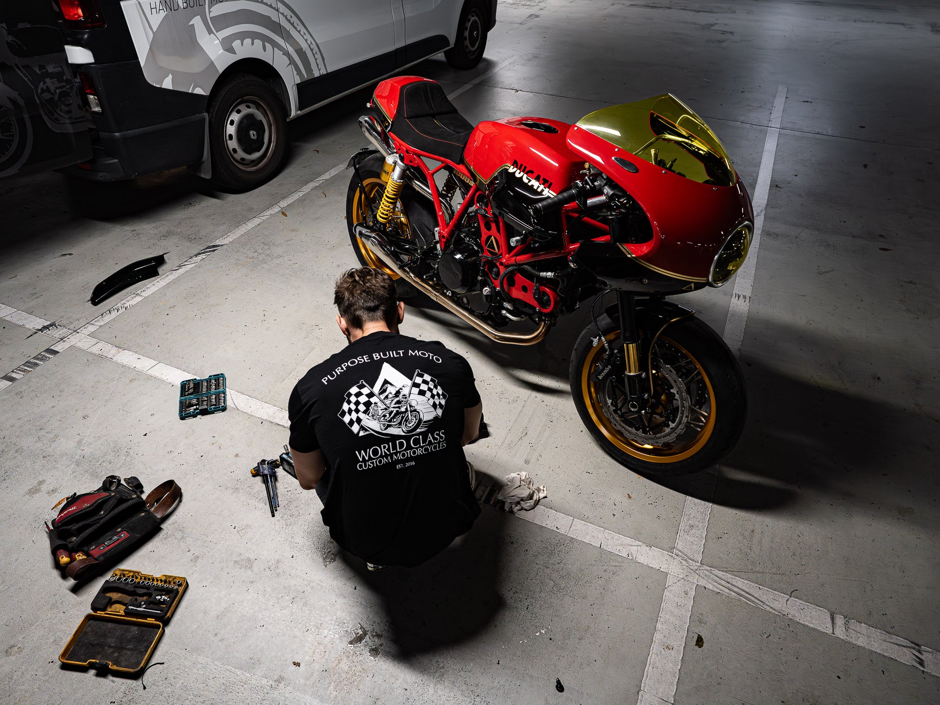 Having bought the bike nearly new and growing to love it over the years, it was crucial to Jeff that we retain the essence of the motorcycle while upgrading its performance, enhancing its style, and releasing more of what makes this bike special. Jeff is a passionate rider, with a collection of motorcycles that reflect his appreciation for bikes built for specific purposes—cruisers, racers, touring bikes, and, of course, the iconic Ducati Sport Classic. He understands that a man needs options. Our job was to make his Purpose Built Moto Ducati the obvious choice when he wanted a jaw-dropping custom build that delivers the full motorcycling experience—from the moment you pull the cover off it in the garage, to when you step off it with dilated pupils and an elevated heart rate.