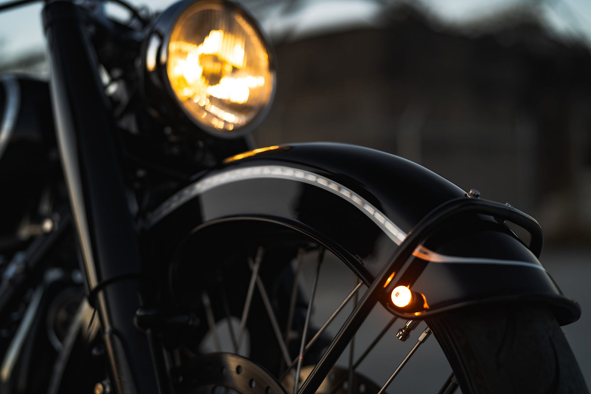 Fuller Moto's R18 project also featured parts from Purpose Built Moto, enhancing the functionality while preserving the clean, minimal aesthetic of the build. The Omni LED lights provided a modern lighting solution that didn’t compromise the bike’s vintage look. Known for their sleek design and powerful output, the Omni lights were the perfect choice for this project, maintaining a low-profile appearance while offering bright, reliable illumination.