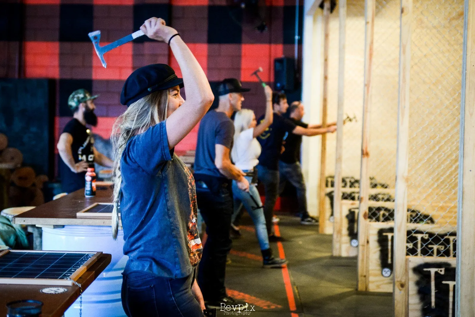 Als wir von unserer kurzen Fahrt zum Lumber Punks GC ankamen, wurden wir mit dem Geruch von Pine, einer Gruppe Flanno-gekleideter Jungs und der begehrten Wand aus Äxten begrüßt. Die Jungs gaben uns ein paar schnelle Tipps, um sicherzustellen, dass wir das Beste daraus machen, und ließen uns dann ihre armen Holzwände verwüsten. Wenn Sie sich über dieses Axtwurf-Phänomen nicht im Klaren sind, probieren Sie es doch mal aus! Ich war ehrlich gesagt skeptisch, aber es ist einer der unterhaltsamsten und urkomischsten Nachmittage, die ich seit langem hatte.