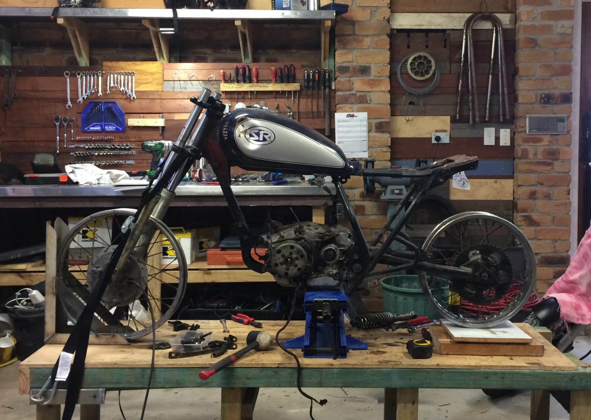 Cristian von Cocolea Furniture kontaktierte mich kurz nach Abschluss des GS550 Border-Laufs. Er war auf der Suche nach einem Prunkstück für sein Lager, das zu seinen Möbeln im Fliegerstil passte. Ich hatte zwar Bedenken, einen Café Racer zu bauen, der nie auf die Straße kommen würde, aber als ich anfing, musste ich ihn so sehen, wie er war. Eine Gelegenheit zu zeigen, was ich mit einem maßgeschneiderten Motorrad machen kann, ohne am Ende die Einschränkungen der Transportvorschriften einzuhalten.