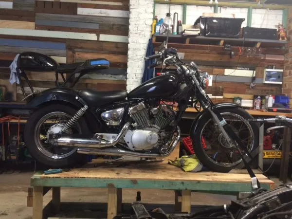 Yamaha XV250 sind serienmäßig mit einigen unansehnlichen Chrom-Airboxen und Seitenabdeckungen aus Kunststoff ausgestattet. Ich habe es mir zur Aufgabe gemacht, dies zu korrigieren, um Dylan persönlich einen Gefallen zu tun, indem ich die Airbox und den Platzfresser entfernte, um Platz für einen ästhetisch ansprechenderen Pod-Filter zu schaffen.