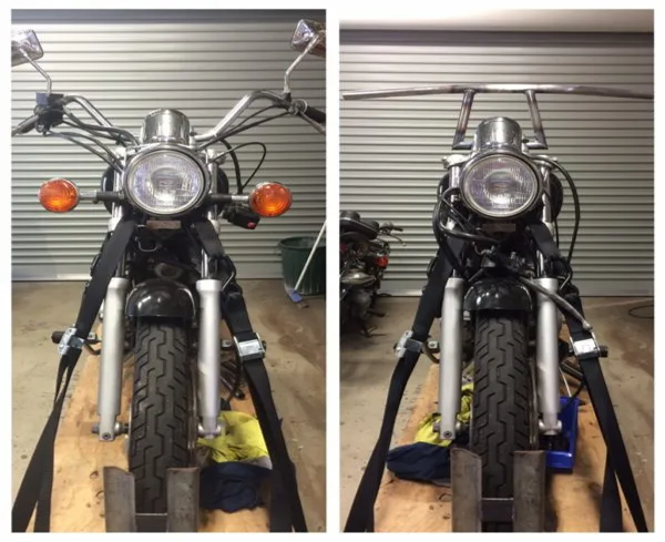 Ein Satz Lane-Splitterstangen wurde hergestellt, um die Armposition des Fahrers nach oben und näher zu bringen. Zusammen mit einer neuen Schraube am Hilfsrahmen und am Sitz sorgte dies dafür, dass er für seine Wochenendfahrten besser positioniert war.
