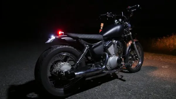 Der Heckschutz wurde entfernt, neu geformt, zugeschnitten und mit einem After Hours Choppers-Bremslicht und einem Satz unserer Hollow-Tip-LED-Blinker ausgestattet. Dadurch wurde das Heck fertiggestellt und das gesamte Erscheinungsbild des Fahrrads schlanker. Es ist erstaunlich, was der Austausch der werkseitigen Blinker und Lichter für ein Motorrad bewirken kann.