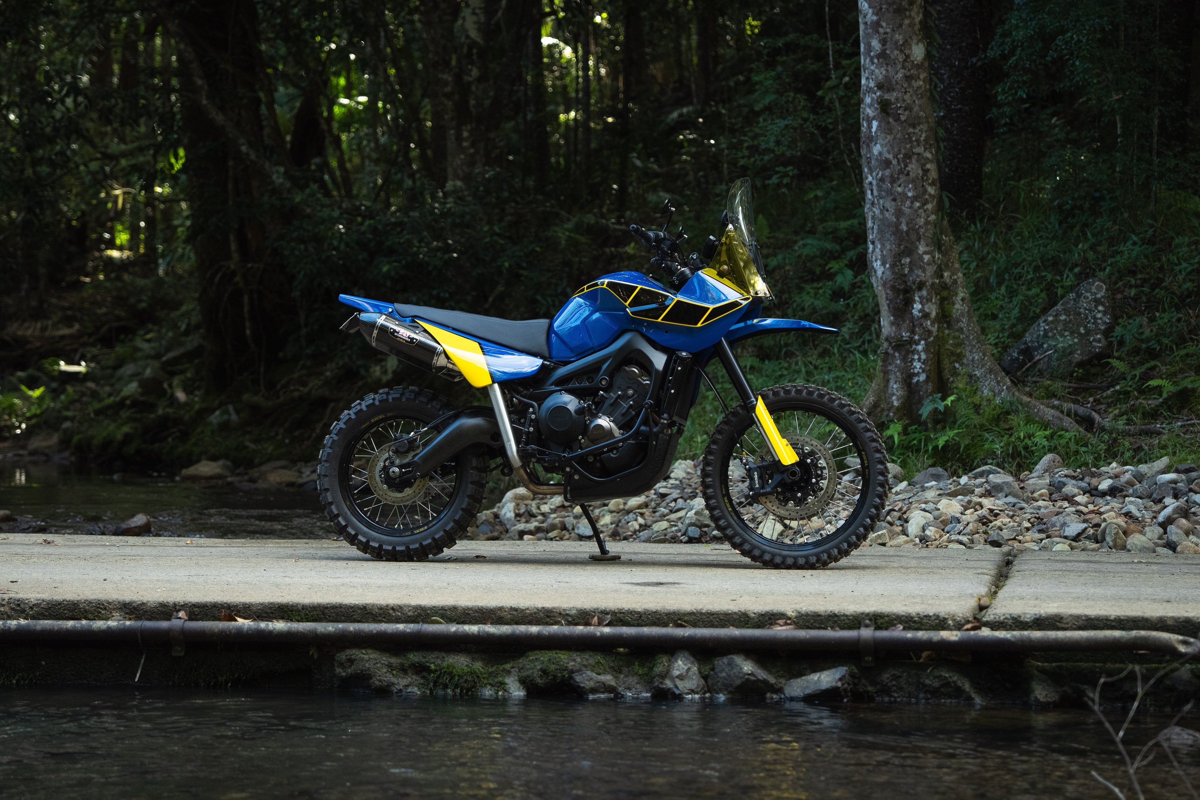 What started as a 2019 Yamaha MT09 turned into the adventure bike Yamaha never built. This Tenere 900 conversion was done right here in our Gold Coast garage — long-travel suspension, 21” front, custom rally tower, hand-shaped bodywork, and that rowdy triple engine to top it all off.
