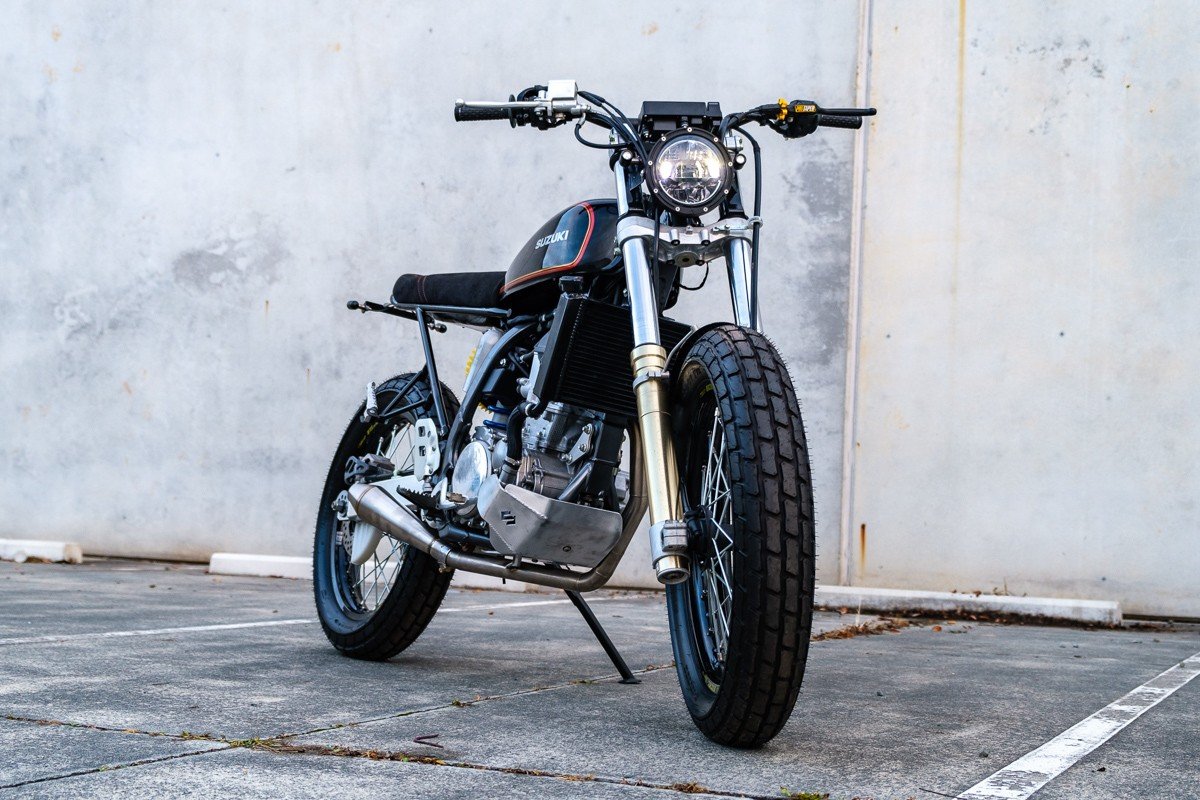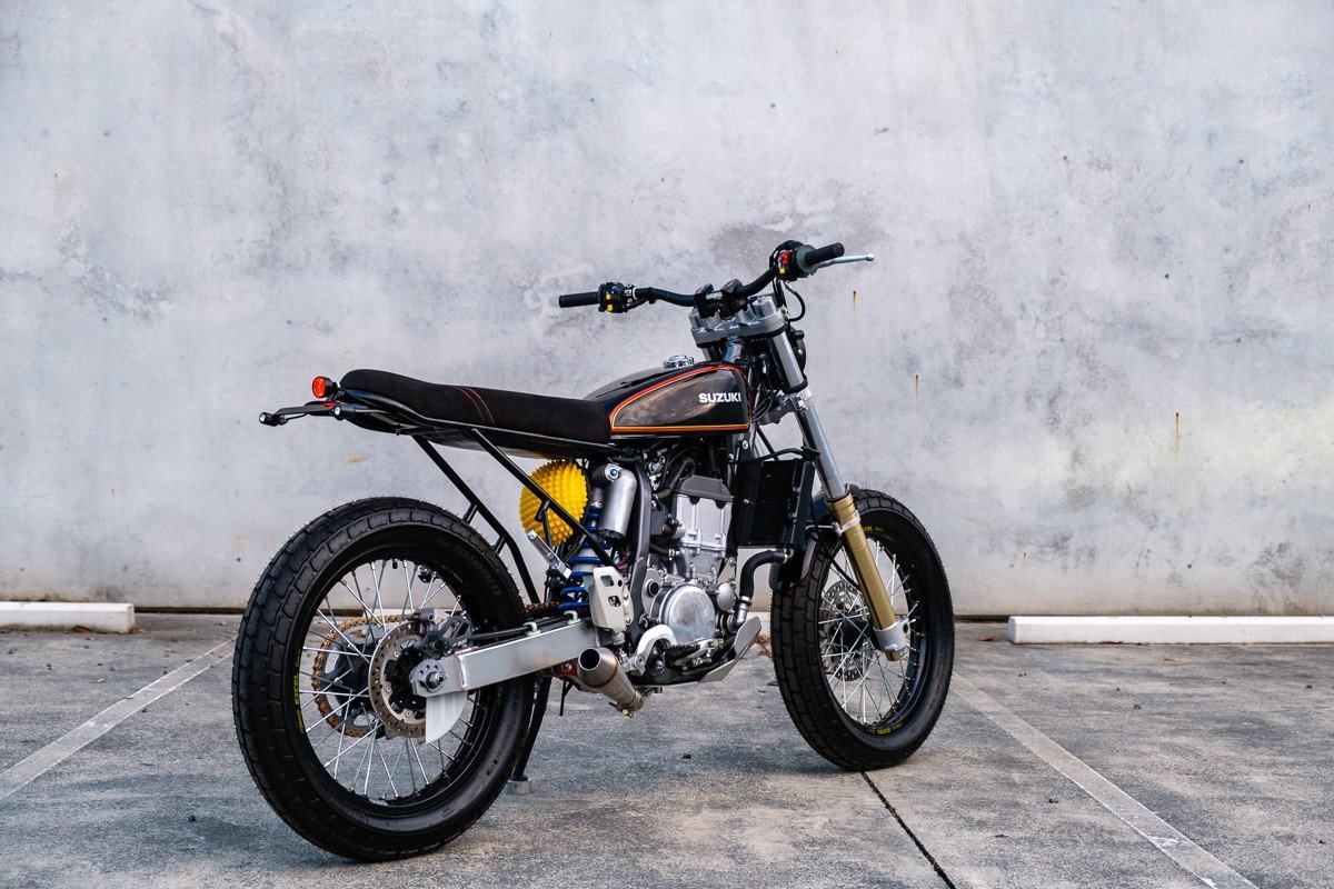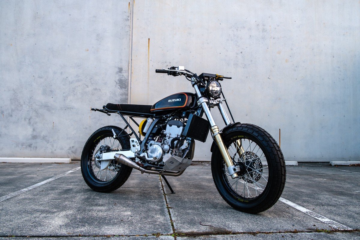Cela fait, la suspension a été abaissée et raidie pour une meilleure conduite sur route. Le DRZ n'est pas aussi bas que la plupart des versions de type Street Tracker, mais c'était un choix de Tim pour garder le vélo agréable et confortable à conduire.