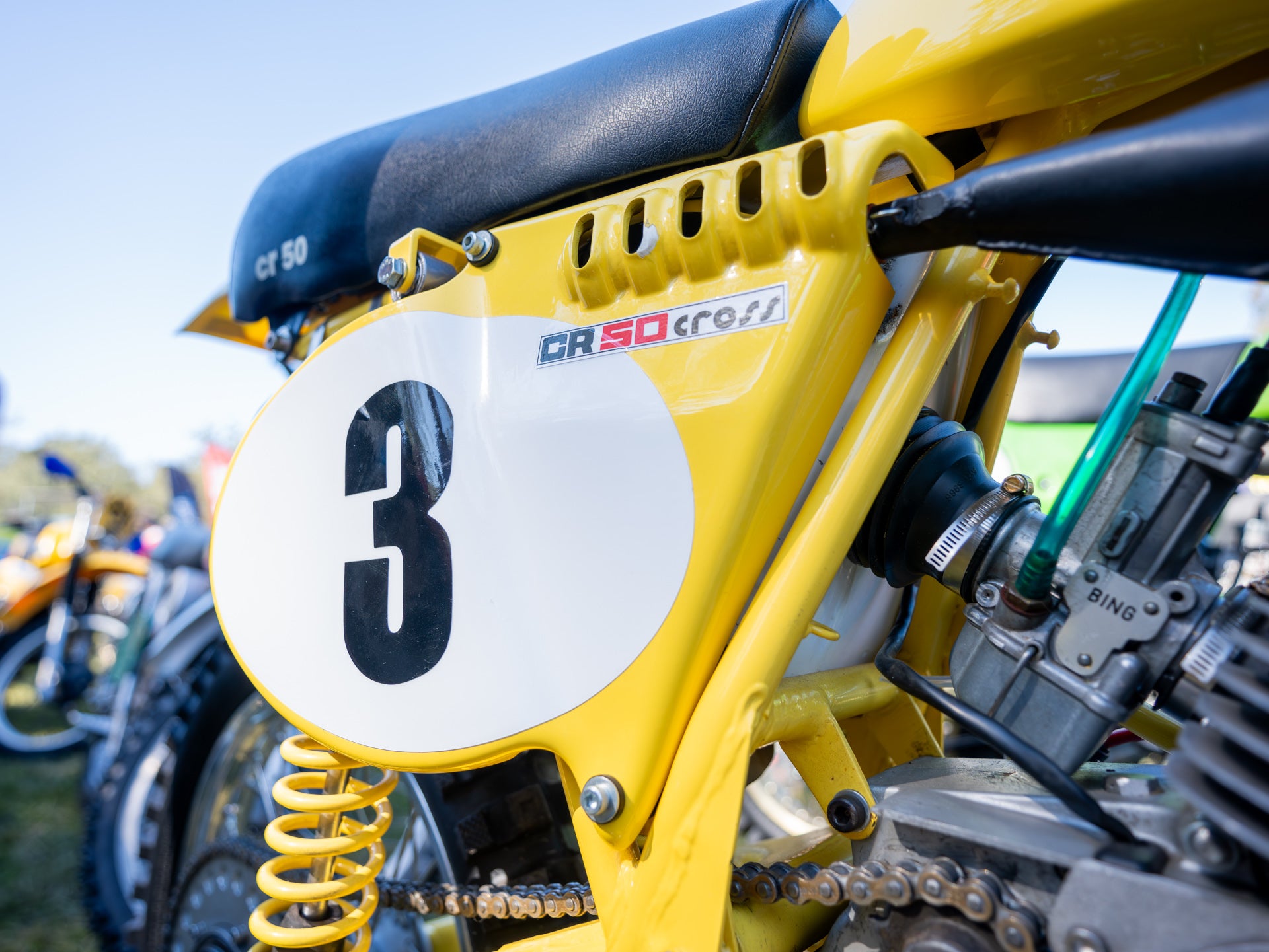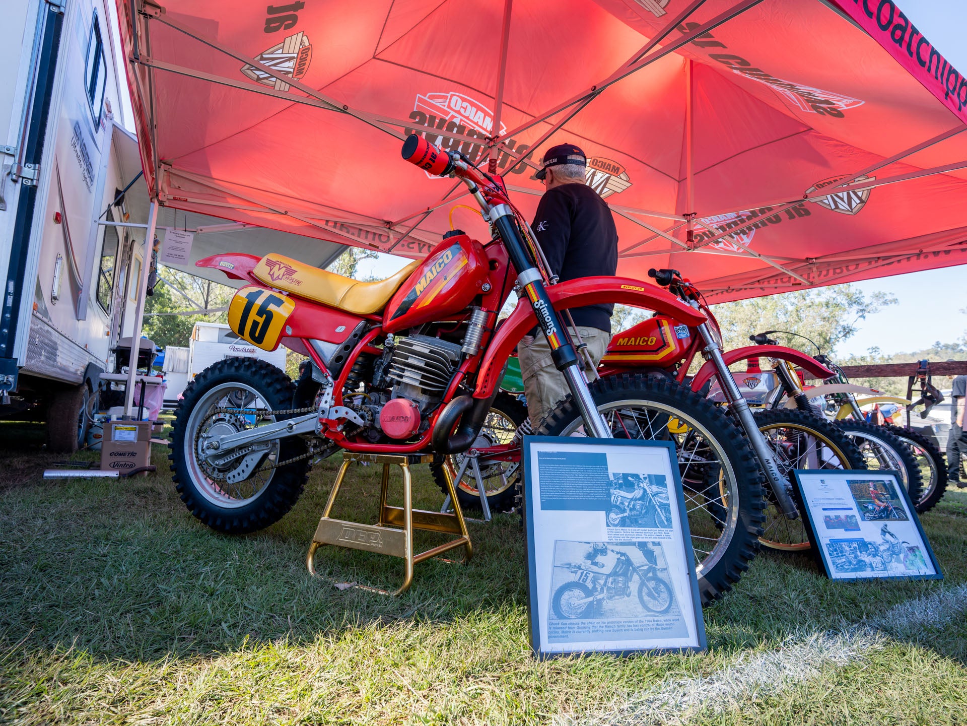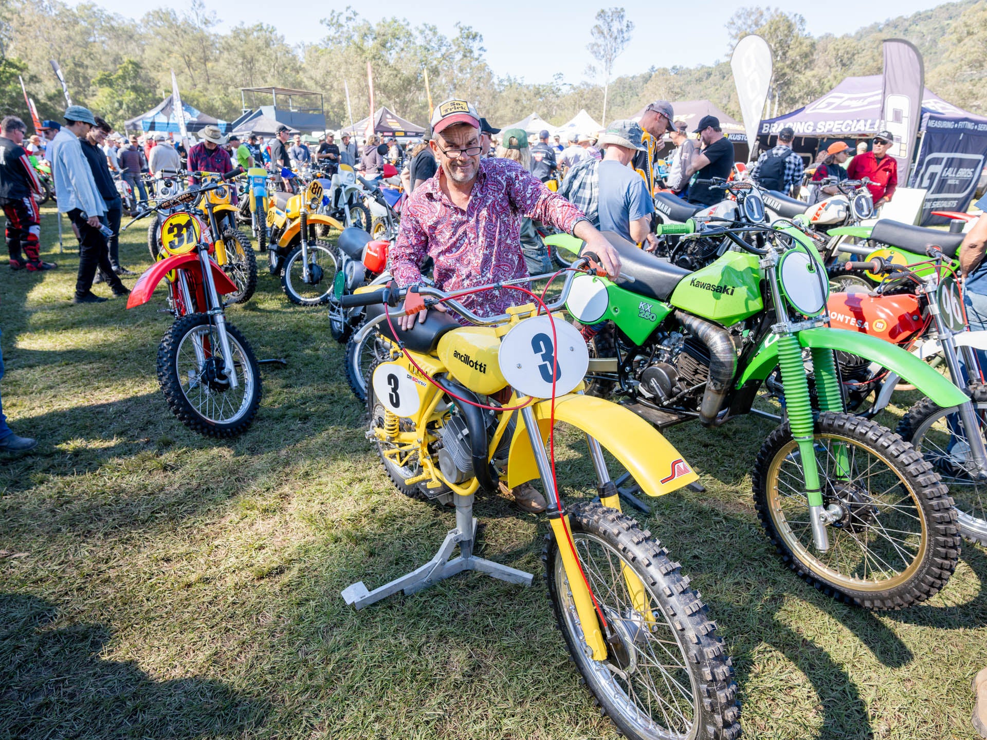 The Show and Shine has some of the shinier (and some not) examples on display, from ultra rare barn find to concourse restored bikes that may never see a dirt track. The club provided a huge amount of prizes for the show and shine entrants and even included a bike giveaway during the Saturday night. We managed to pull over a particularly proud owner of the yellow Anciolotti CR50, an ultra rare Italian MX bike. He had seen the bike in a Motocross magazine in the early 80’s, kept that magazine and hunted for the bike for 46 years before finally finding one in Europe, purchasing it and shipping it over. This sort of thing goes to illustrate just how passionate these guys are about their machines, if nothing else it's inspiring to see that kind of commitment to their chosen vice.