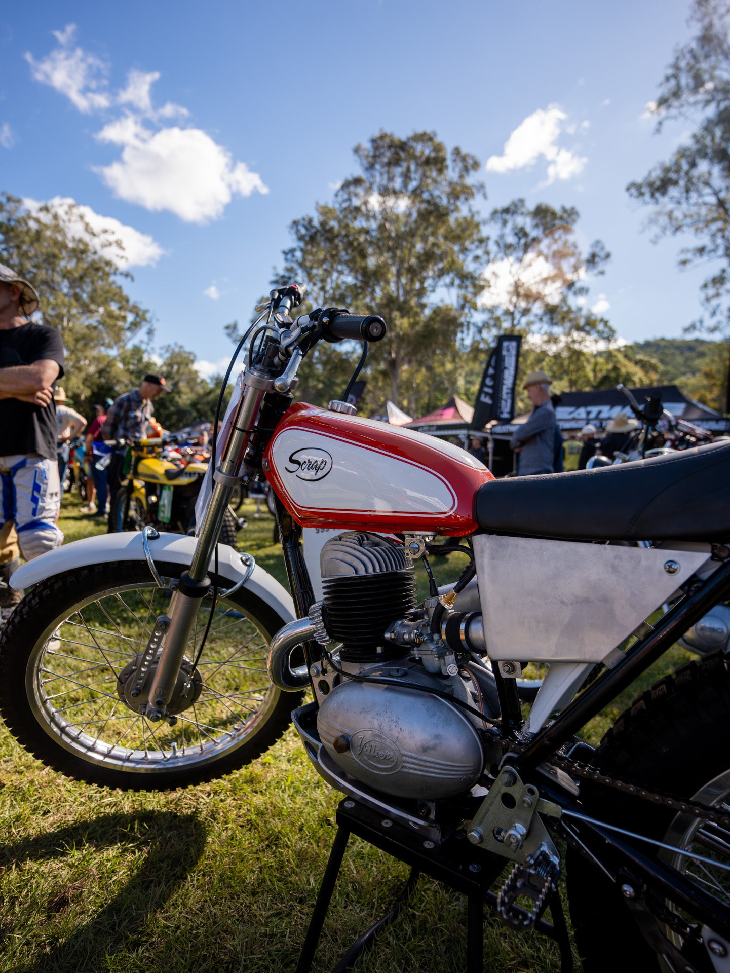 We at Purpose Built Moto were lucky enough to be invited to display a few bikes at the Show and Shine section of the event, and decided to make a weekend of it; embracing the culture around the event and catching up with riders that have come from all over over the country to enjoy the event Sunshine Coast Motorcycle Club has put on for more than 30 years. Hosted for pre-95 Dirt bikes, the facility sports 2 motocross tracks, a trials area, an enduro loop and the ever entertaining and fiercely competitive flat track. Spectators lined the tracks or were perched on “drunks hill” to watch riders pushing their vintage dirt bikes through tests that they probably should have retired from years ago.