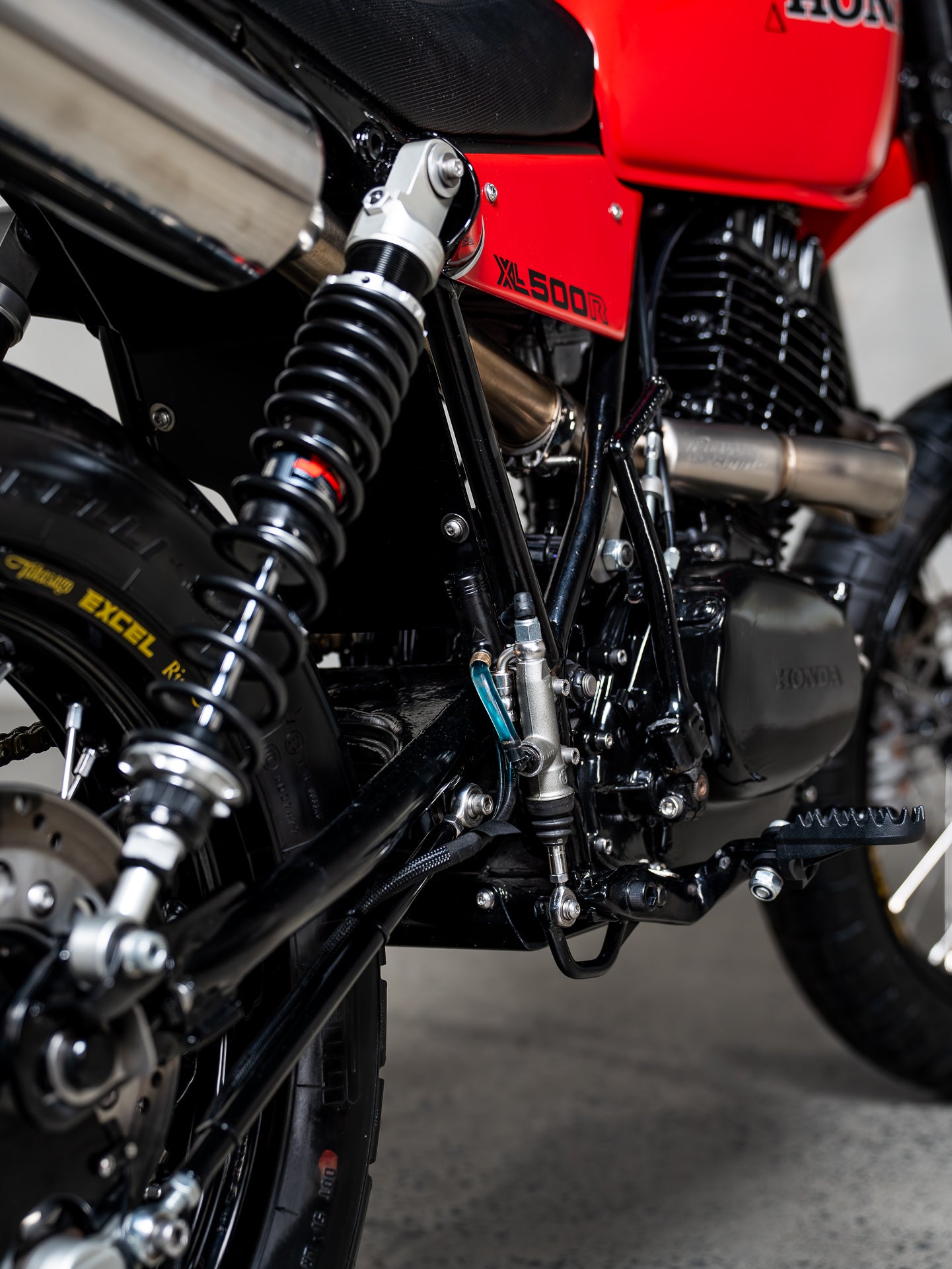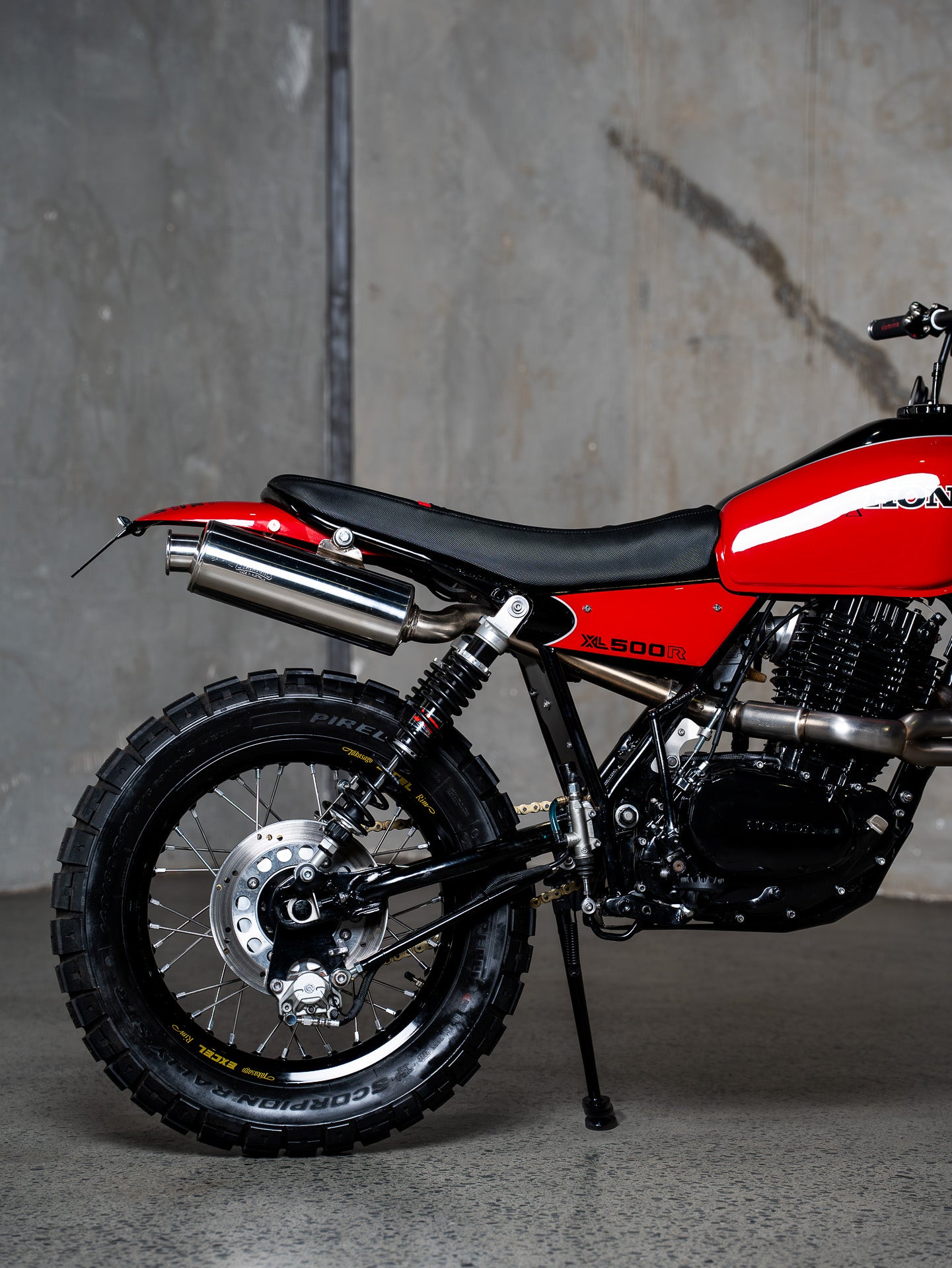 This XL500 rides as good as it looks. The engine pulls strong, the suspension soaks up the bumps, and the upgraded brakes deliver increased confidence. With our careful selection of updates, the XL500 Scrambler is an ultra versatile ride.