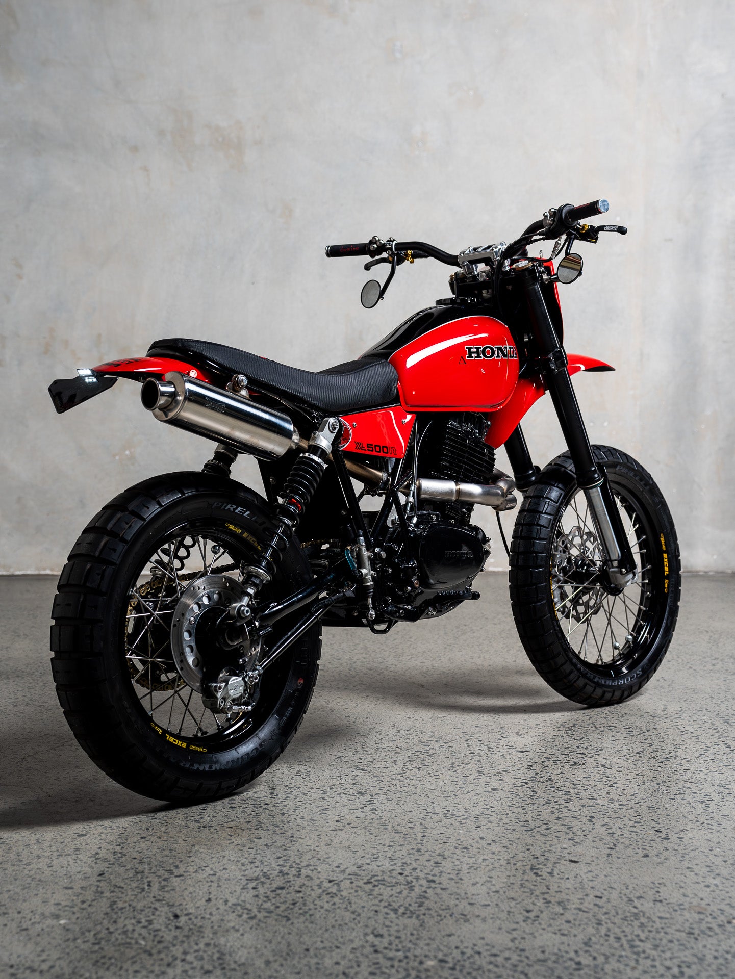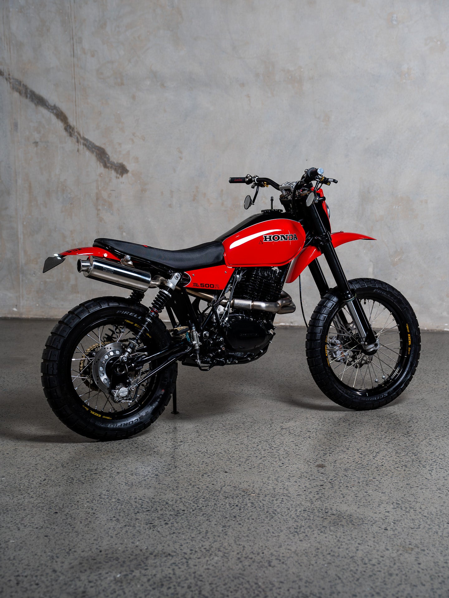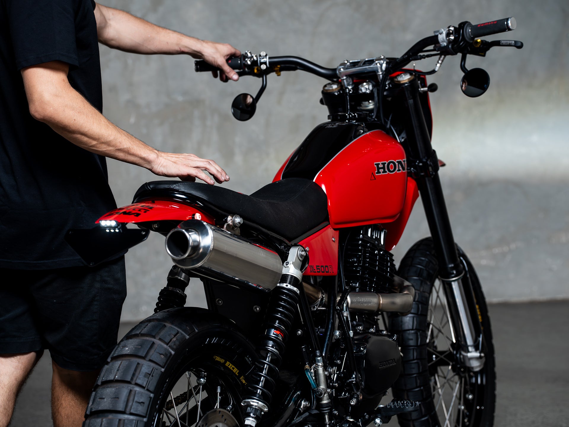 Retrocross is a term we use to describe the Strand of Design DNA that we've developed across builds like our DT400, XT500 and now the XL500 featured here. The Design direction aims to light a fire in the belly of that teenage boy in all of us. Taking the prolific bikes we grew up around, heard our dads talking about or learnt to ride on and re-imagining them with a sharp eye on clean aesthetics and modern performance upgrades.