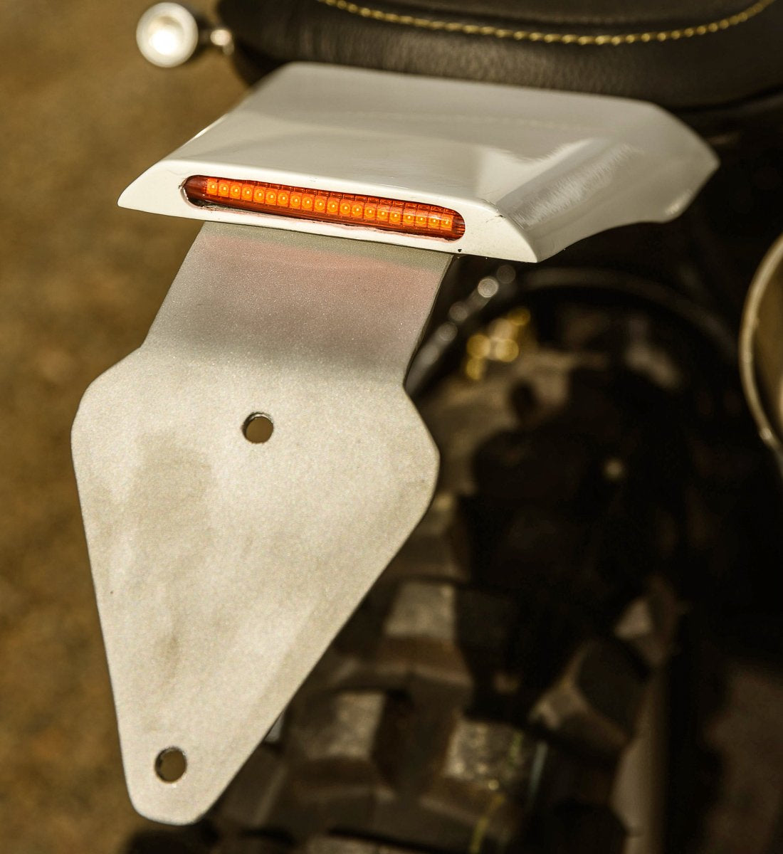 En m'inspirant des styles des motos de motocross sur lesquelles j'ai grandi, j'ai fabriqué à la main un garde-boue en aluminium pour finir l'arrière de la moto. Construit pour abriter un feu stop à LED et un garde-boue minimal, la pièce arrière a été façonnée et soudée pour accentuer la sensation hors route du projet. Un détail important pour moi ici est les angles opposés du silencieux et du garde-boue arrière depuis le côté. Se croiser légèrement est quelque chose que vous verrez souvent sur les motos Motorcoss et Enduro 4 temps, dont j'ai toujours aimé le look.