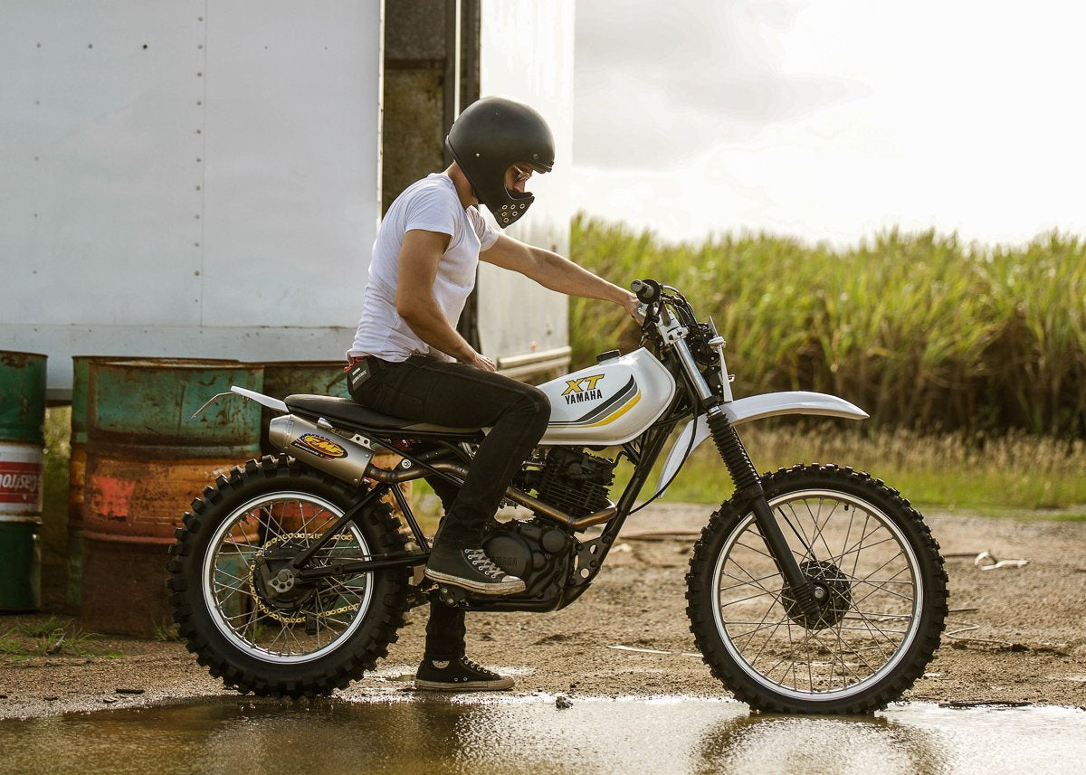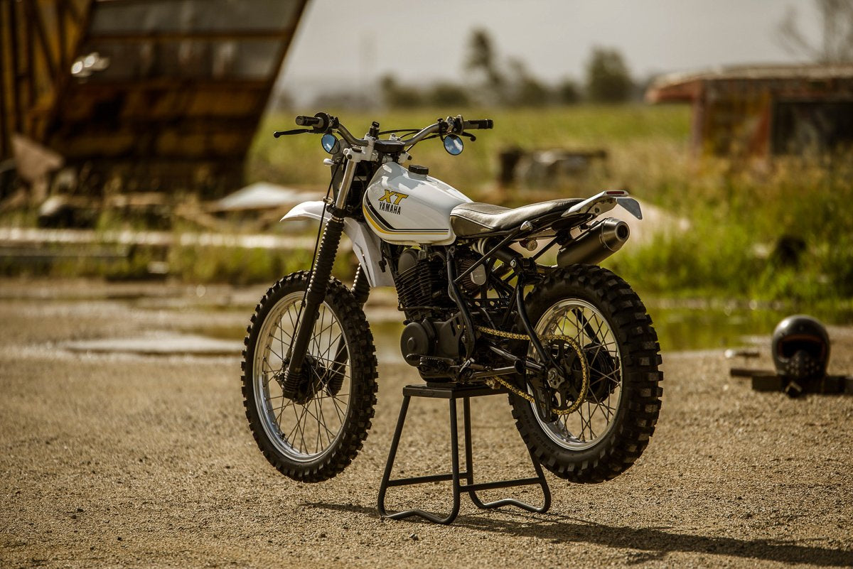 D'où se trouve aujourd'hui le scrambler Yamaha XT250 MX, vous ne sauriez jamais qu'il s'agissait d'un vélo de ferme autrefois négligé et maltraité. Comme pour tous les brouilleurs, vous savez que vous avez fait du bon travail lorsqu'ils ont l'air bien propres, mais encore mieux sales. L'essai de ce vélo sur une propriété agricole avec quelques routes de gravier et des flaques de boue a rapidement prouvé que mon hypothèse était juste. Un brouilleur personnalisé inspiré du motocross serait très amusant. Case cochée, sur la prochaine build.