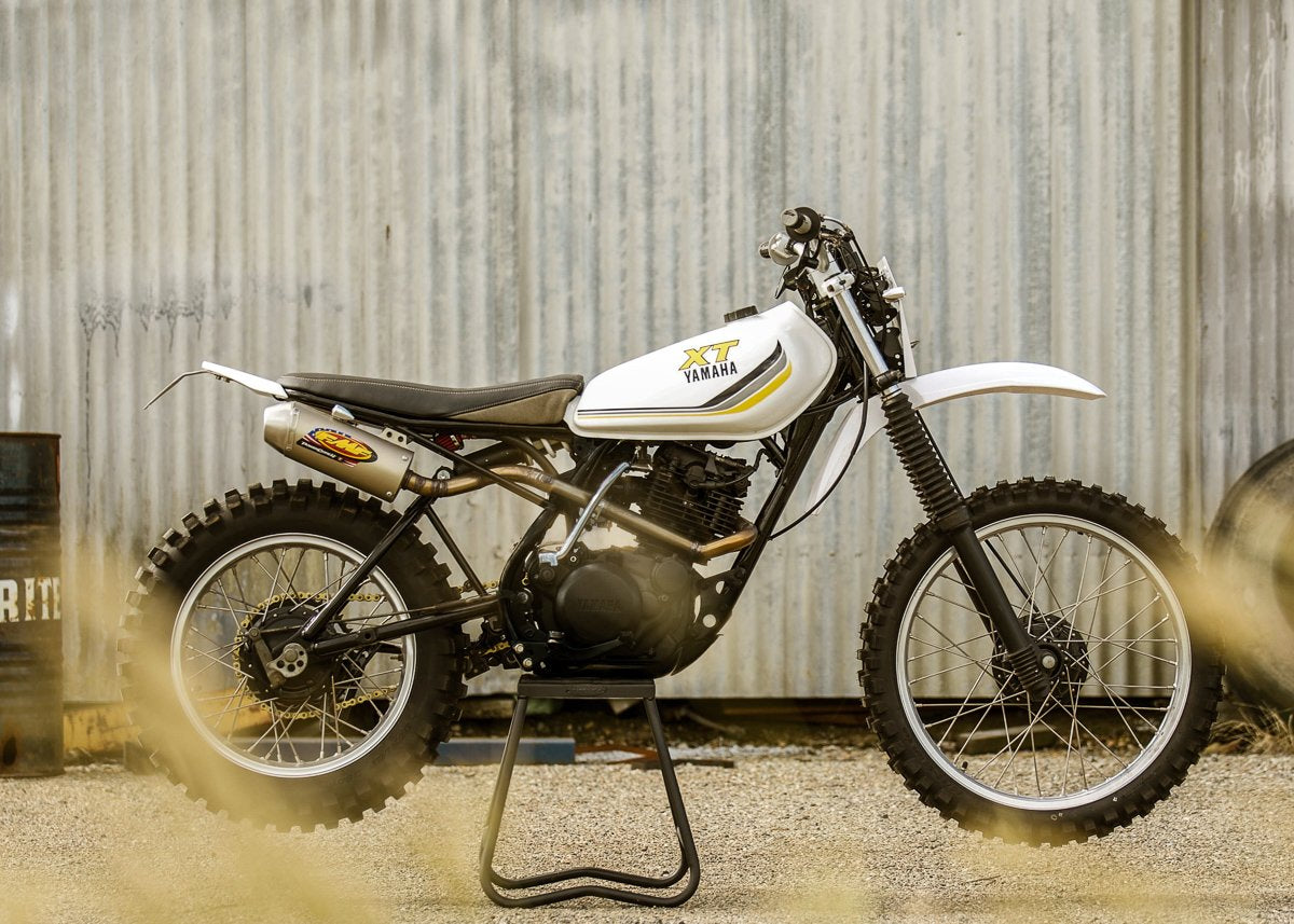 La solution la plus simple aurait été de monter une belle aile arrondie et un feu arrière rond avec un siège cousu en rouleau, probablement de l'abaisser pour qu'il ait l'air plus joli, de mettre des pneus 50/50 et d'en finir avec cela. Je n'ai pas tendance à choisir la solution de facilité, et le scrambler Yamaha XT250 MX ne sera pas différent. Pourquoi ne pas construire un vélo de motocross personnalisé ? Je ne trouvais pas de raison suffisante, alors c'est exactement ce que j'ai fait.